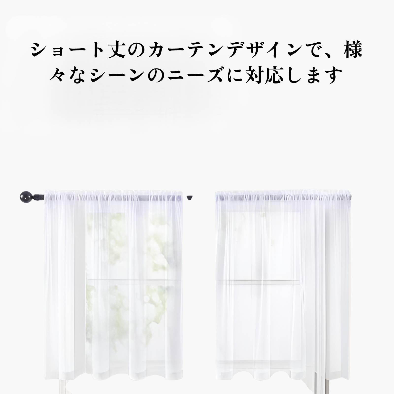 シンプルな純色トリロンショートカーテン。遮光性・耐久性に優れ、洗濯も簡単。多様なインテリアに調和し、快適な空間を演出。